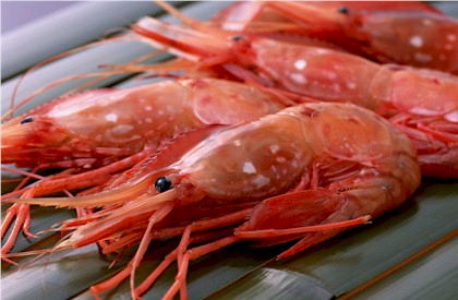 | ボタンエビの解禁になる漁場(主に3月〜噴火湾、7月〜礼文島、9月〜噴火湾、礼文島12月〜積丹、留萌、稚内).ボタン海老は80〜100mに生息する地域もありますが、日本海では200〜300mで丁度今話題の海洋深層水の中で生きている事になります。その他にもシマ海老・ホッカイシマ海老・ブドウ海老・ガサ海老(トラ海老orゴジラ海老)等の種類が漁獲されるが少ない。 ボタンエビからでてくる甘みは遊離アミノ酸のグリシンやベタインによるものです。これらはコレステロール値を下げ糖尿病や高脂血症などの予防に効果的です。 |